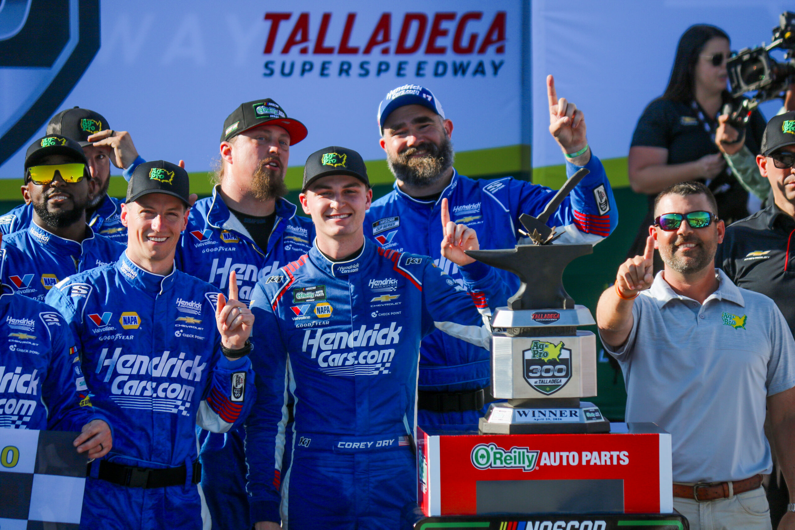 Corey Day won the Ag-Pro 300 at Talladega Superspeedway on Saturday, breaking through for his first career NASCAR O’Reilly Auto Parts Series win. The No. 17 Hendrick Motorsports Chevrolet finished 0.154 seconds ahead of second-place Brent Crews.