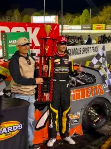 “After the past day and a half here, we were struggling with the car quite a bit,” McKee said. “All the guys made a really good adjustment at the halfway break. The car came alive after that stop and I passed up to second. (Reaves and Huffman) got into it there and I knew it was my shot. I ran my best four laps at the end there and came away with the win.”